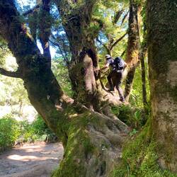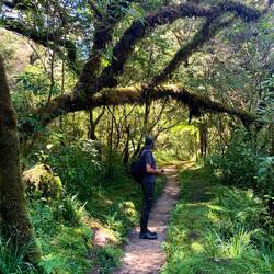 An einer Stelle, an der der Weg nur über Holzplanken über ein Moor führt, hören wir plötzlich in einem Akzent "Felix?!". Etwas irritiert drehen wir uns um und sehen Alice. Eine Mit-wandererin vom O-Trek! Was ein Zufall. Wir unterhalten uns und tauschen uns ein wenig aus, lange geht das leider nicht, denn die Holzstege sind so eng, dass wir den Weg für alle anderen, die hier durchmüssen, blockieren.