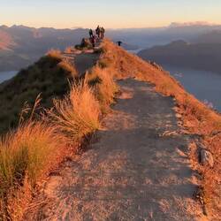 Als wir endlich oben ankommen, ist der Ausblick schon ziemlich beeindruckend. Roy's Peak liegt oberhalb der Fjordlandschaft Neuseelands und man hat einen großartigen Blick über die vereinzelten Buchten und Arme der Fjorde. Ein wenig wird dieser Blick von den Massen an Menschen getrübt, und all die Leute, die unbedingt ganz vorne an der Spitze stehen wollen.