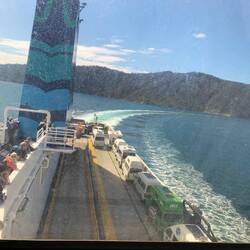 Schließlich dürfen wir die Fähre boarden. Glen steht sicher und trocken, und wir sichern uns ein nettes Plätzchen in einem sonnigen Bereich mit Sofas, von dem man schön aufs Meer schauen kann. Carola geht's immer noch nicht gut (Bauschschmerzen und Übelkeit) und sie muss sich die meiste Zeit hinlegen und ausruhen. Die Fährfahrt dauert gut 4 Stunden. Felix guckt viel raus aufs Meer, denn wie wir gehört haben, soll man vom Schiff aus auch öfters das Glück haben, Wale zu sehen! Leider nicht an diesem Tag (Wale und wir.... das scheint einfach nicht zu funktionieren 😂)Read more