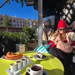 Nachdem wir uns von Stefanie verabschiedet hatten, sind Daniela und ich zu einem Spezialitätengeschäft für Schokolade gegangen, das besonders für seine heiße Trinkschokolade bekannt ist – inklusive flüssiger Schokolade. Dort bestellten wir eine dicke, intensive Schokolade mit Churros. Zusätzlich bekamen wir ein Probierset mit vier verschiedenen Schokoladensorten, von weißer Schokolade bis hin zu sehr feiner Zartbitterschokolade. Ein echtes Highlight.