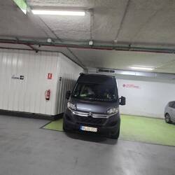 Zwischendurch ließ ich Daniela kurz raus, damit sie sich mit Stephanie treffen konnte, mit der wir verabredet waren. Ich selbst fuhr noch gut eine halbe Stunde weiter, bis ich schließlich einen Stellplatz fand. Und das ausgerechnet direkt in der City – genau in der besagten Tiefgarage, die etwa eine Stunde später plötzlich wieder frei war. Ich konnte es kaum glauben, aber tatsächlich durfte man dort mit einem Camper bis zu 3,10 Meter Höhe einfahren.