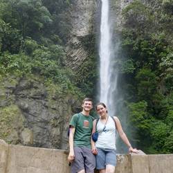 Als erstes fahren wir zwei Stunden mit dem Auto an die Regenwald-Grenze, dort besuchen wir zunächst wieder ein Tierreservat, wo viele verletzte Tiere aufgenommen worden sind und nun ein neues Zuhause gefunden haben. Von Kaimanen (kleineren Krokodilen), bunten Papageien in verschiedenen Größen und Farben, über Ozelots (eine Leoparden-Art), Tapire, Schlangen und Schildkröten bis hin zu Äffchen, Wasch- und Nasenbären ist alles vorhanden. Wir beobachten die Wildkatzen, wie sie and Kuhköpfen knabbern und einen Tapir, wie er vom Tierarzt eine Spritze bekommt und spielen ein bisschen mit den neugierigen Affen, bevor wir uns weiter in den Dschungel aufmachen. Davor gibts noch ein leckeres Essen (Fisch, in einem großen Blatt gedämpft, dazu Kochbananen-Kroketten und Gemüse) - dann gehts mit Gummistiefeln ausgerüstet durchs Dickicht, ins Wasser und in knöcheltiefen Schlamm. Wir sehen „wandernde Bäume“, die sich durch immer neu bildende Wurzeln im Jahr bis zu einen Meter fortbewegen, Termitenbauten (die Termiten kann man essen oder als natürliches Insektizid verwenden - beides demonstriert von unserem Guide), wir lernen den Kautschukbaum kennen und sehen, dass man die Früchte des Korkbaums wir natürliche Haarbürsten verwenden kann. Ziel ist - na klar - mal wieder ein Wasserfall! Dort gönnen wir uns eine kurz Erfrischung und wagen uns ins kühle Nass, bevors durch die schwüle, stehende Luft wieder zurückgeht. Bevor wir wieder ins Auto steigen, verkosten wir noch hier hergestellten Zuckerrohr-Schnaps (bäh) - da gehen wir lieber schnell weiter.