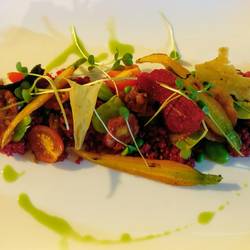 Wir gönnen uns das 5-Gänge-Degustationsmenü um schlappe 20€ und probieren uns durch ecuadorianisch-internationale Fusion-Cuisine mit haufenweise spannenden Gerichten, hübsch garniert und präsentiert. Hammer!!
