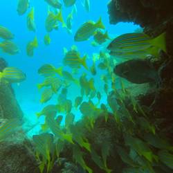 Gestärkt von Fischsuppe und frischen Garnelen in Knoblauchsauce machen wir uns dann auf zu einer Tauchstation. Wenn wir schon hier sind, will ich sehen, ob ich nicht ein paar Hammerhaie aus nächster Nähe erleben kann...