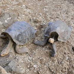 Nachmittags gibts Galapagos-Café aus einer kleinen Kaffeerösterei (mmmhhh!!!), dann schauen wir uns noch die Riesenschildkröten im Darwin-Center an, eine geschützter Ort wo der Schildkrötenbestand genauestens erforscht und dokumentiert wird, um ein Aussterben dieser einzigartigen Spezies zu verhindern (das wäre schon einmal fast passiert: in den 70er Jahren waren nur noch 14 übrig, die Arbeit hier hat den ganzen Bestand wieder auf 2000 Schildkröten ausgeweitet!). Auch Lonesome George, der letzte seiner Rasse von noch größeren Schildkröten, steht ausgestopft hier - er hatte keine Lust sich zu paaren, darum bleibt mit seinen Überresten nur die Erinnerung an gigantische Schiuldkröten!