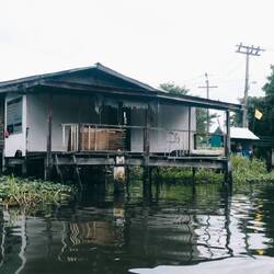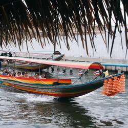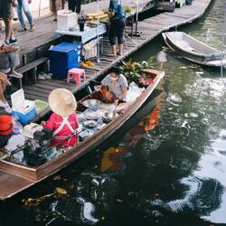 Die sogenannten "Klongs" sind die Kanäle in Bangkok. Menschen, die am Flussufer ihre Häuser auf Stelzen stellen, um vom Hochwasser gefeit zu sein. Vielleicht umgehen sie mit ihren langen Booten auchBaca selengkapnya
