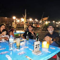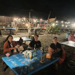 O casal com quem estava junto com os dois filhos vivem com condições básicas, tem uma barraca que vende comida e bebida que chamam de Waroeng.