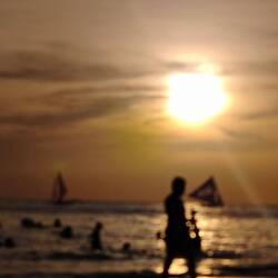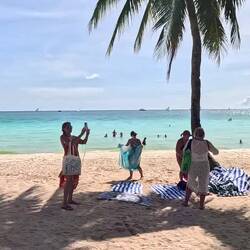 Cheguei a Boracay, um calor infernal, muito turista.