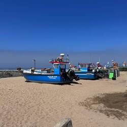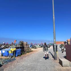 Leaving Porto was a pleasant walk along the River Douro until we reached the ocean and turned right to follow the coast- easy! This morning we passed surf lessons, joggers and sand tennis games- people were out and about having fun very early today! It was also very foggy and so the ocean didn’t appear as I’d seen it before- each time I’ve been here the weather has been different- same walk but various conditions make it seem brand new again and of course it’s different walking with Luke! He doesn’t know a stranger and so we chat and joke and make new friends as we go along. We passed the memorial to the fishing fleet that was wiped out during a storm in the worst fishing tragedy in Portugal’s history- so sad. Walking through the little traditional fishing villages that dot the coast is an adventure- people sell fresh fish on the streets and the seafood markets are bursting with many varieties. The smell of salt and fish is heavy in the air. Our lunch was delicious-I had sardines that were fat, salty and briny- yum! As we walked we passed lots of restaurant chefs outdoors charcoal grilling fish and it smelled so good! We also passed ancient Roman tanks carved from stone that were used in salting and preserving fish and beds for drying water to obtain salt- this area has been dedicated to the fishing industry since Roman times or before. Fish from this area is considered to be the best in the country. Today was a boardwalk day- it stretches for miles and miles along the shore. Once the fog burned off, the wind kicked up and it was so windy in our faces that it was hard to keep a hat on! We visited the chapel of San Sebastián and also the Nossa Senhora do Socorro chapel just before we made it to our hostel in Vila do Conde which is the old Palacete Melo- very fancy for a hostel! We checked in and really felt our legs were so tired but rightly so because we discovered that in the end we had walked 19 miles! After a shower and nap I went out looking for a grocery but instead ran into a food expo/fair, a “feira de gastronomia”! It was all local foods and the people were out sampling everything- such a surprise! This area is known for ship building and lace making - the town is a summer destination and tonight it was hopping with the expo and locals out and about. We are tired so it’s lights out for us- tomorrow will be more adventures I’m sure!Read more