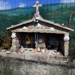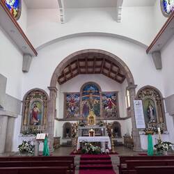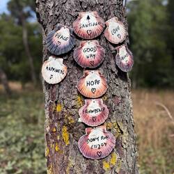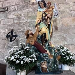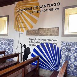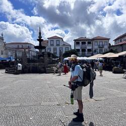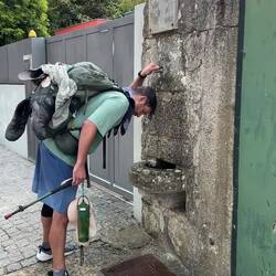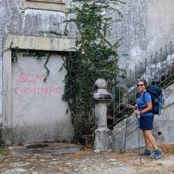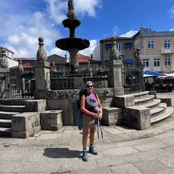 Last night I slept so deep- I was tucked in a cubby with my curtains pulled and I heard nothing until 10am when I opened my eyes to full sunlight and a panic- oh my goodness I never slept so late on a Camino! Luke was asleep too and all the other pilgrims were gone- what a pair we are!! We roused and got backpack and boots together and were out the door as quick as possible and on the road! And then we were in a church within 3 minutes of our hostel- it was the beautiful Igreja da Misericórdia where there was a small altar to San Tiago- a good way to get the day back on the right foot! On the way out of Esposende we passed the memorial of Homem do Mar and the São João Baptista fort and then we ambled through small villages full of houses with red tile roofs. We were greeted by numerous little dog and cats who made sure to let us know they saw us! The day was clear with blue skies and cool breezes- so pleasant and calming. We stopped at a grocery store in Marinhas and bought apples and peaches and protein bars, visited the village church San Miguel and kept going. We visited many churches and chapels today- one had the most beautiful statue of St Thérèse that I’ve ever seen and so I felt my mom with me today! The people in Portugal have a devotion to Our Lady of Fatima so each church has some type of statue or painting of Mary clothed in white as she was described at her miraculous appearances. The flowers on the road were not as plentiful as in the springtime- this has been a hot summer- but the ones we saw were stunning- bougainvillea, oleander, sunflowers and purple morning glory seemed the most plentiful. We entered the eucalyptus forests again and were on rocky paths. I find it amusing that even though you are far from the villages and people, there are still donativos- unmanned booths with goods or snacks for sale- that pop up randomly! Luke bought me a shell bracelet today and we got some fruit and a pain au chocolat too at another one. We stopped in at the O Lampio bar for a soda and were treated to honey and jelly crackers and peanuts- the owner there has done the Camino many times and he’s super kind to pilgrims. His place is jam packed with soccer memorabilia and everything else you could imagine- eclectic to say the least and a must stop! We crossed a thin bridge of concrete blocks over a small waterfall and considered dunking our feet but there were miles to go so we hiked on. From time to time we ran into our new friends from the hostels and it’s fun to see familiar faces like Virginie from France, Petra from Germany and Aimée from Canada. We see lots of families with young kids. Today we met a mom with her 15 year old son and when I shared that Luke and I were mother and son on the same journey we had a sweet connection! 💕 Further up the road in Castelo da Neiva we visited the small church only to find it full of flowers and some ladies working on a float with Our Lady and baby Jesus featured prominently up top. Apparently this Sunday they celebrate the Festa de Nossa Senhora de Guadalupe and there will be parades and men will carry this float/ platform- I wish we could see it being carried because it certainly was lovely! A little further on we visited their large parish church of St James ( San Tiago) which has the distinction of having a remnant of stone that proves a devotion here to St James from the year 863! The woods gave way to farmland soon after and we saw goats, sheep and chickens while we walked on cobblestone streets again. In Anha the church was striking - whitewashed in the Portuguese manner with St James in the niche up top, a painting of him on horseback carrying a shield with a red sword just below that and finally some marvelous front doors with shell decorations- lovely!! Arriving into Viana do Castelo at sunset topped off a long hard beautiful day with a ton of hiking- 18+ miles! This morning may have started with a flourish but the day ended with sore feet and lots of good memories. For now we are tucked into the Albergue De Santa Luzia high up top a mountain above the sea and thanking God for our safe arrival and looking forward to tomorrow and new adventures.Read more