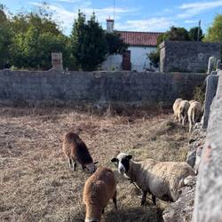 I had accidentally double booked lodging for tonight- a hostel room in O Miladoiro and a hotel room in Santiago. That also played into our decision to keep going- after two weeks of hostels and hard beds a hotel room was tempting. I messaged the host at the hostel and she let us in so we jumped off the trail and into the shower there to get cleaned up and rest 45 minutes and be refreshed before walking again. We were popping in and out of forestry areas and farm villages with lots of chickens, roosters, horses and sheep and we even passed a mama cat with 6 kittens pouncing around each other- so cute! We passed stone lavandara- ancient outdoor washing stations covered with trellises- lots to see this afternoon!