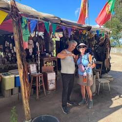 Arriving in Porto this morning was like a dream- I’m so happy to be back! We were blessed with mild weather and sunny skies- a perfect day to explore the city. Luke and I dropped our backpacks off at our hotel which was in the heart of the Ribeira district and decided since we were literally on the banks of the Douro that an early morning river cruise sounded fun. Today we’re allowing ourselves to be a little touristy! We boarded an old wooden boat and enjoyed cruising and admiring the views of Porto, the 6 bridges, and the quaint town of Vilanova de Gaia on the opposite side of the river. The ancient boats (called rabelos) that were used to transport the sweet wine famous here are moored along the river banks and make such a charming scene. There were lots of people out and about with us enjoying the day and the late summer weather. When we docked we walked over the Don Luis I bridge (along with many of the other tourists) and checked out some of the wine cellars- it was too early to drink but fun to see the old casks and wine making equipment! We made our way back to the Ribeira district with its narrow medieval streets and took a funiculaire ride to the upper city. From every part of the city you can see the towers of the Sé or Cathedral of Porto because it was built so high up on an ancient fortress. It’s such an impressive church full of art and beautiful tiles and our visit there was wonderful. We offered prayers asking for safety on our pilgrimage and purchased our pilgrim credential which we will have stamped along our journey. We made our way next to the lively Sǎo Bento train station ( built over an old convent!) to admire the over 20,000 blue and white tiles that document the history of Portugal- it was a busy busy place with lots of travelers making their way . This afternoon we strolled through outdoor markets, ate yummy street food, made a side trip to Decathalon to buy hiking poles and ended up back at the hotel tired but ready to get on the road in the morning. I’m falling asleep as I write tonight- I can hear laughter and conversations from the restaurants below us and traditional Fado music playing in the distance- it’s so good to be back in Portugal and I’m excited for our pilgrimage to begin!Read more