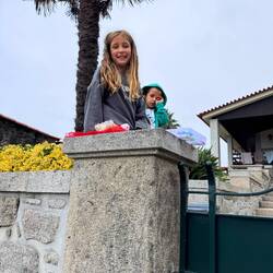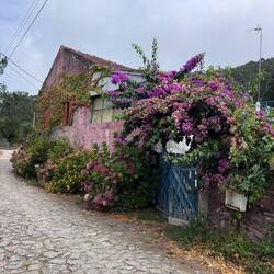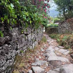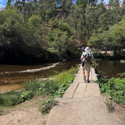 We had rain all night and woke up to a foggy morning at our hostel in the clouds on the monte San Luzia. We were high above the city and the ocean but the visibility was unfortunately poor so we couldn’t enjoy the views but we did make a point to visit the beautiful Santuário do Sagrado Coração de Jesus. It has an immense crystal chandelier, a huge rose window of stained glass and a painted dome- very lovely. You are invited to climb the stairs to the top but we knew what was in store for us today on our hike so we tried to save our energy! We did light candles and say a prayer for our new little expected babies 💕 and the ones already here 💕and we admired the statue of Nossa Senhora da Abadia. We packed up and rode the funiculaire down the mountain (again trying to limit stairs and save our legs!) and hiked out of Viana do Castelo on busy roads that led us to cobblestone paths that wound through a maze of rock walls crowned with vines, ferns and purple morning glory flowers. We pass ornate closed gates periodically and if by chance one is open, it’s fun to peer in and see the landscaped courtyards within and imagine living here! We spent a lot of today climbing and it was difficult. The weather was very humid and it was hard to keep up with fluids- we ended up with about 15 miles of hiking. We were mostly on cobblestone paths (ouch!) and soft dirt/ muddy paths (a little easier on the feet! ) We saw a lot of little shrines today and saw tiled religious scenes on sides of houses- it was a good reminder of religious devotion in Portugal. We also saw many of the pilgrim’s rock piles where spontaneous memorials appear as people make their way and leave remembrances- cards, ribbons, and inscribed stones. On the paths we often pass locals out and about with their daily business or walking their dogs and housewives and grandmas returning home with bags of groceries. It’s good to see the life that’s here! People are very friendly to us and we even were offered a handmade bracelet (for a euro ha!) by a sweet little girl, a budding entrepreneur who set up shop on top of a stone wall. I forgot to ask her name darn! In the town of Afife we happened upon a small oasis next to the stone bridge that’s never been opened when I’ve passed it before. It was the old monastery São João de Cabanas that was renovated into a complex in the woods and included the old church, lodging where the cloisters must have been and outdoor dining. We had a delicious lunch with zucchini quiche, salad, a caprese focaccia and cake! All very civilized until we left and immediately had to climb a long long way straight up a broken boulder path- oh my goodness it was hard! We powered on for several more miles through Ancora and then ended up in Vila Praia de Ancora and immediately hit a grocery store for some yougurt and some fruit and water. VP de Ancora has a beautiful church full of blue and white tiles and the special statue of Nossa Senhora da Bonança- she holds baby Jesus in one arm and a boat in the other hand! Her festival will be in town over the first of September and the town is preparing with posters and advertisements. The church sits on a city plaza and it was full this evening with lots of locals chatting and visiting. We had planned to keep hiking until Caminha today but we were tired and my feet ached so we pivoted and got a room here. Luke did laundry so we’re ready for tomorrow and Spain!Read more