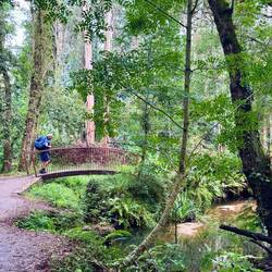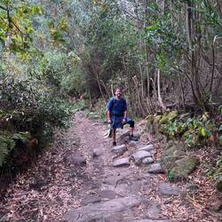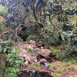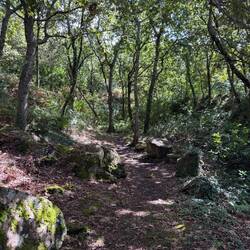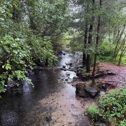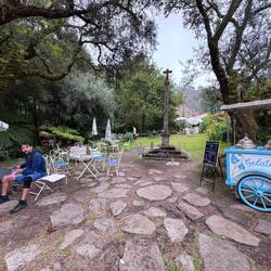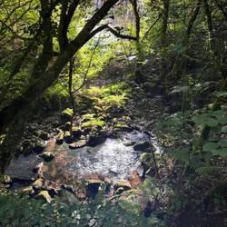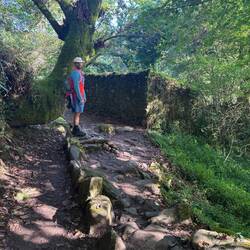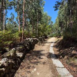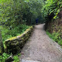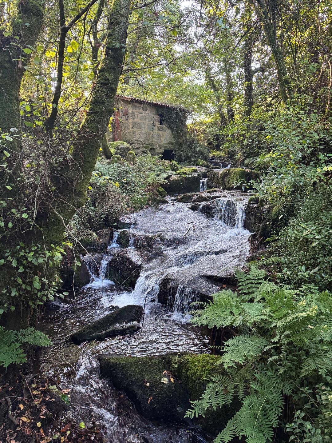 We crossed ourselves as we passed the Monastery and began to hike what is supposed to be the most beautiful leg of this Camino. We were immediately on the Ruta da Pedra e da Agua- the route of stone and water. Describing this day’s walk is difficult because without pictures it’s hard to imagine the beauty we saw and felt. Basically we were in a magical fairyland of nature with hanging vines, mossy stones, rushing waterfalls, trickling water, birds singing and cool breezes. Little local dogs keep running themselves up the path too! (We ask them if they’re enjoying the Spiritual Variant!) All of that and more is what we had on our walk this morning- it was Heaven on earth!