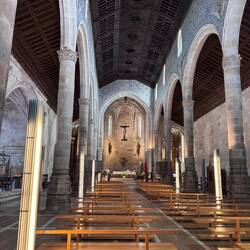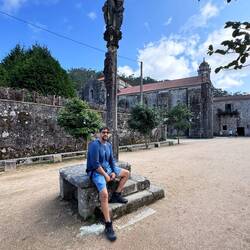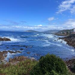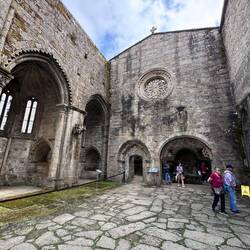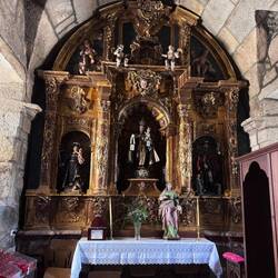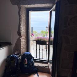 Our next town was Caminha, a small town located at the left bank of the Minho River’s mouth and we can see Spain just across it! The main square has such a fun energy from the cute café terraces along the border, the monumental fountain (chafariz)in the center, the Clock Tower (Torre do Relogio) which is a remnant of the original city walls and the Church of Misericórdia which celebrates its 500 year anniversary this year! It was so lively with carved and gilded elements and statues. We had a lunch of burrata and tomatoes and vegetable soup and then things started going haywire for us. Luke is sick (possibly with heat exhaustion) and so we’re not going as fast as we have been along the route. We managed a visit to another church on the way out of town- this one was started in 1428 and Masses were held very quickly even before the church was completed- it’s called Our Lady of the Assumption or Lady of the Angels, Matrix of Caminha. It’s again just as lovely, just as breathtaking and such a holy place to rest a bit and offer a prayer. We made our way down to the river, bought tickets for the water taxi, met our captain and hopped on board headed across the river to Spain! The ride was in a small boat but we had faith in the captain- he told us he’s brought a million pilgrims over the river! Once we landed we headed out and tried to get up the coast but it wasn’t long before both of us were dragging. The walk to A Garda is long and flat along the sea and since we had to be in Oia because our host was leaving we jumped in a taxi to arrive in time. (We lost an hour when we crossed into Spain). Luckily we reached Oia with time to spare we hurried over to the Mosterio de Santa Maria de Oia to visit this spectacular ancient (from 1137) monastery. It sits directly on the sea and gives off an authoritative tone- it’s still used as a church for Mass which is a treasure for the people of this village. We really loved seeing the statue of Our Lady of the Sea in its own special altar up front. After our visit we checked in to our accommodation (a beautiful home) and I went to visit the inn keeper I had seen before. This is a village I would come back to visit over and over. I ran into the market for some groceries and then we were set for an early night to try and recover. I can hear the raindrops hitting the cobblestones outside and I know I’ll dream of what adventures and sights tomorrow will bring.Read more