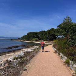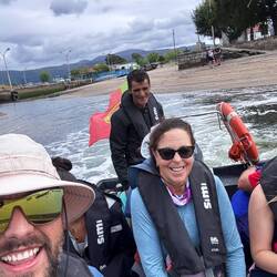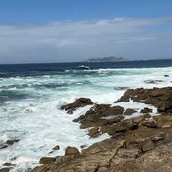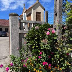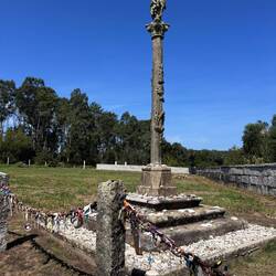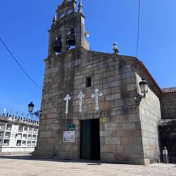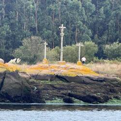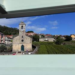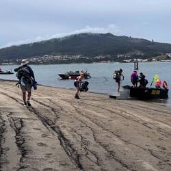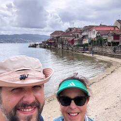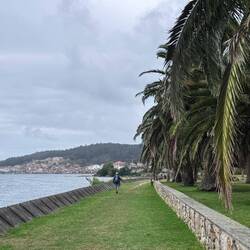 Along the Arousa estuary we landed on a sandy path that bordered three different beaches that had clear blue water and looked so inviting. The sun was shining and we were getting hot so we stopped for a frozen treat to cool us down while we rested our feet. Then it was only a little bit before we were crossing the O Terrón walkway into Vilanova de Arousa. Luke swam on the beach while I put laundry in, checked out the local grocery and stole some time to write. When he was back we visited the beautiful San Cipriano church with the statue of Senora du Carmel who is a patron saint of sailors and went across the street to see the ruins of Capilla de San Mauro from the late 15 century. We watched the sun go down and ended the night with sweet conversations with our hostel roommates. It was a great Camino day- beautiful but a long 15 miles and we have a boat ride in the morning so it’s off to sleep now.Read more