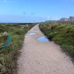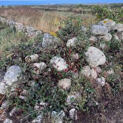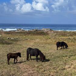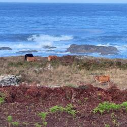 We were immediately walking on soft sandy paths- easy on these tired feet! I’m not walking fast because of blisters and seeing a big snail in my path made me laugh- I’m not that slow! We saw lots of livestock in pastures located just above the sea which was so interesting because the “fences” were rock walls! It’s hard to imagine all of the time and energy it took to construct the endless rock walls we’ve seen on our journey. Anyways, the cows and horses seem to understand they need to stay put so the walls do work.