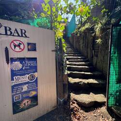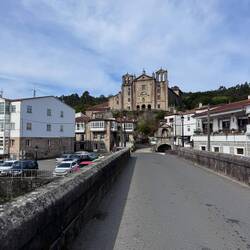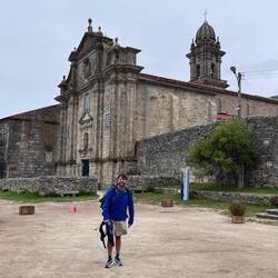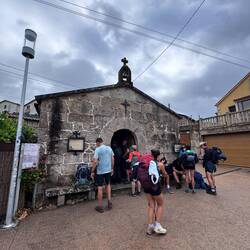 It seems you always get a second wind once you realize you’ve made it for the day and I suddenly felt better. I got a shower, put clothes in to wash and then we went to visit the beautiful Santa Maria da Armenteira church. So happy to be here in this peaceful and holy place! The church was so grand. These huge churches we see are so demonstrative of a different time when faithful craftsmen labored to complete these masterpieces of architecture. It’s possible that people who worked on these churches never saw the final product in their lifetime and we are definitely the grateful recipients of their work. Our day was almost over (a 15+ mile day!) so after a quick dinner of fried ham and pork and a plate full of the famous Padron peppers, we headed back down to the Monastery for the traditional pilgrims blessing. The ceremony was run by 8 nuns who sang so sweetly that it make you want to cry. ( Yes I did!) In the end, a priest came up to bless us in our own languages. It was heartfelt and so kind and unforgettable. This was the perfect way to end a long hard memorable day. Time to sleep now and dream of climbing hills.Read more