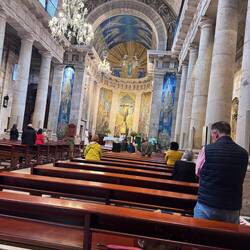 Monday morning came too soon. We got up and checked out of our sweet little hotel room that had a Juliet balcony and windows with a view of the Cathedral. We left our bags in lockers and Luke went to enjoy the view on the rooftop tour of the Cathedral while I shopped around a little. We had an early lunch then decided to go to Mass a final time before boarding our bus back to Porto for our flight home. Our Mass was beautiful again and so meaningful because of all we’d been through to get here and sad because we had to leave. Luke translated the major points of the homily for me and at several points even I could understand the priest when he exhorted us to ask St James for his protection and intercession. And then it happened! The Tiraboleiros in red appeared and began preparing the giant incenser, the Botafumeiro, to swing. Seeing this iconic occurrence is rare and I really appreciated my second time to witness it and also to have Luke see it! We watched the priest light the flame for the incense and then step back as the men heaved together to lift and swing the Botafumerio. We were on the side of the church in position to watch it clank and spark and smoke and swing up high from side to side of the church - truly exhilarating! Then the priest blessed us and we left the beautiful church with sadness but anticipation of life after Camino. We walked over to board the bus to the airport in Porto and we were on our way back home; excited to see our loved ones and share our experiences. 🙏❤️ 🥾Leer más