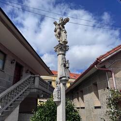 In Priegue I passed the Cruceiro de As Rexas which is significant because it references St John the Baptist with a lamb as well as the crucified Christ and Our Lady of Mercy. It is easy to miss because you have to climb these old narrow stone steps which are often overlooked and I was pleased to get to see this special cross on my pilgrimage! In Coruxo I saw the 12th century church of San Salvador- it was locked but the exterior is beautiful with three semicircular apses- I hope one day I can go in to visit but for now I’m happy to have seen where it is. It’s surrounded by a wall and there are steps leading up to the front doors and there’s a huge cemetery behind it- lots to see! Making my way in to Vigo was pleasant. The path was sandy and soft from the rain they got this afternoon ( I never felt a drop! ) and there were lots of locals out jogging, walking dogs and biking. Walking along the small river I saw lots of ducks and other birds fishing. I saw Vigo’s huge new soccer stadium being built and then I was on busy streets with traffic. It was 5:45 before I knew it and all in I walked 14 miles today before my phone was down to 5% and I grabbed a taxi to our hotel. Vigo has many churches and sites- I’m hoping Luke is feeling better and we’ll see some together in the morning. All for now…Read more