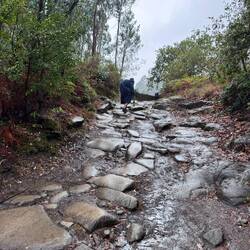 Luke cooked breakfast for us in the hostel this morning and then off we went into the rain with ponchos flapping in the wind. We opted to have our backpacks transported today since this was a new road to me and all I’ve heard is that it’s such a long climb. Fingers crossed our bags reach our next hostel!