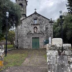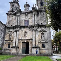 In Priegue I passed the Cruceiro de As Rexas which is significant because it references St John the Baptist with a lamb as well as the crucified Christ and Our Lady of Mercy. It is easy to miss because you have to climb these old narrow stone steps which are often overlooked and I was pleased to get to see this special cross on my pilgrimage! In Coruxo I saw the 12th century church of San Salvador- it was locked but the exterior is beautiful with three semicircular apses- I hope one day I can go in to visit but for now I’m happy to have seen where it is. It’s surrounded by a wall and there are steps leading up to the front doors and there’s a huge cemetery behind it- lots to see! Making my way in to Vigo was pleasant. The path was sandy and soft from the rain they got this afternoon ( I never felt a drop! ) and there were lots of locals out jogging, walking dogs and biking. Walking along the small river I saw lots of ducks and other birds fishing. I saw Vigo’s huge new soccer stadium being built and then I was on busy streets with traffic. It was 5:45 before I knew it and all in I walked 14 miles today before my phone was down to 5% and I grabbed a taxi to our hotel. Vigo has many churches and sites- I’m hoping Luke is feeling better and we’ll see some together in the morning. All for now…Leer más