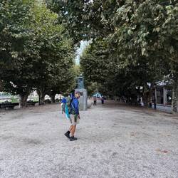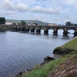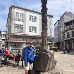 It was pouring rain this morning and that relieved our guilt for sleeping late a tiny bit- we needed it and the rain was really coming down! We had breakfast which was scrambled eggs (they call this an omelet!), a huge piece of home baked bread and some fresh squeezed OJ- perfect to get us going. Once the rain let up a little we set out to explore Vigo a bit before strapping on packs. We headed down to the waterfront which is full of boats of all sizes- there was a large cruise ship moored as well as smaller sailboats. Vigo port is well known for its seafood processing and exporting. We saw the Jules Verne memorial - it’s a bronze statue of JV sitting on an octopus- very cool! He mentions the bay of Vigo in his book 20,000 Leagues Under the Sea and is thought of as an ambassador for the area. Next we visited the old town of Vigo with its many shops and cafés and immediately went in to the Church of Santa Maria, the Cathedral of Vigo, the Igrexa Colexiata de Santa Maria. It’s a large church with short stairs to the front doors that wind naturally around with the flow of the climb and I think they draw you in. The locals call this church La Colegiata and it houses the statue of El Cristo de la Victoria, the Christ of Victory. He’s so named because the town believes his intercession helped them defeat the French in the War of Independence. This statue is paraded in town during a festival in early August each year. There are beautiful mosaics all over the front and sides of the altar wall- we were able to attend Mass there this morning and felt it gave our day a wonderful beginning. We got our credentials stamped and decided to go back to the hotel, get our bags and start walking. Impulsively I left my Keen sandals there at the pilgrims table for another pilgrim. I couldn’t wear them because they shredded my feet and they were too heavy to keep carrying. Actually once I thought of my blisters and Luke recovering I just couldn’t push enough for that long climb out of the city and up Mount Vigo so we took a cab over to the Senda Litoral and started from there. The morning went quickly and we were in Redondela in time for lunch. This town has the Igrexa Santiago de Redondela and the chapel of Santa Mariña. One large, one small, both right on the Camino and a good place to stamp a credential and rest and say a prayer. After lunch Luke went ahead to save his strength and take my backpack while I limped in to Pontesampaio. There were many more pilgrims today since the way has actually begun for people who prefer to only hike the last 100K of the Camino. I met and walked with a couple of guys from Ireland, girls from Germany and Italy, a mom pushing a stroller with baby Margarita and young people from Australia and Toronto. The world seems small when you’re on the Camino! We came to one point where we were given the choice of roads. One had an elevation of 15% and was 70 meters long vs. having an easier climb at 5% elevation change and 369 meters- of course we all chose the hardest one- peer pressure is a wonderful and dangerous thing! The afternoon got hot but it wasn’t long before I made it to Pontesampio with its medieval bridge. The origen of this bridge is Roman but the current bridge dates back to the Middle Ages and it’s still in use today! It was great to see Luke there sitting on the bridge encouraging me in and pointing to our hostel. There’s construction at the entrance to the town so cars are diverted so Luke had to carry in both backpacks for the last mile and a half… not the rest he was hoping for! He’s feeling better though and made a delicious dinner of pasta with cheese sauce for us tonight as I did laundry. It’s an early night (a luxury on the Camino) and we are tucked in getting ready and excited for Pontevedre! The view from my window is the town church and I hear its bells ringing us good night.Read more