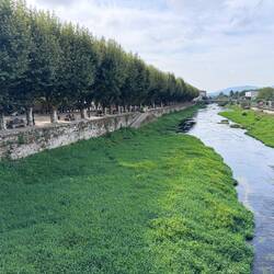 Soon after we arrived at a fork in the road- the choices were the official route or the “Complementario” which is the route to the left (also accepted) which follows the Rio Tomeza back into the forest. Of course we chose to walk along the river! It was puddly and muddy and wonderful- the trees were covered with green moss and the ground was slippery but it looked like a fairy land and before we knew it we were crossing back into civilization and the city of Pontevedra and had 10 miles under our belts today already! We hit a grocery store for grapes and Yougurt and Coke Zero and water then checked into our hostel, showered, did laundry and went back down to the old city for some sightseeing.