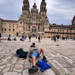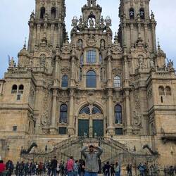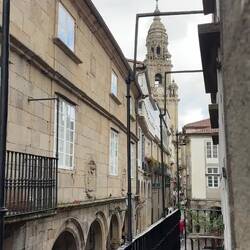 Time slows down a bit when you’re this close… you’re in disbelief that you’ve actually come this far and you vaguely remember the hard times and the doubts that arose when you were sweating and climbing hills and your feet were hurting but none of that matters because you’re almost there! You can just barely catch glimpses of the towers as you wind through the narrow streets with tons of people jostling and moving forward. And then you burst onto the plaza finally and are so relieved, grateful and happy. I shed a few tears that we had actually made it and was so thankful that after all of our adventures together Luke and I had arrived- we hugged and said a quiet prayer together and just tried to take in the flood of emotions. For me the joy was magnified just because I was able to accomplish this alongside my boy! Then it was time for pictures and silliness and watching the other pilgrims around us and their reactions too. It was just after 7pm and cloudy so our arrival pictures are dark and moody but the joy we felt was bright! The pilgrims office was closed and we were too late for the Pilgrim’s Mass but we were here and tomorrow we could quietly get to those events. Tonight it was time to celebrate with a big seafood paella, some pimentos de Padrón, Spanish wine and cold Estrella beer and then fall into our beds without worry or setting alarms.Read more