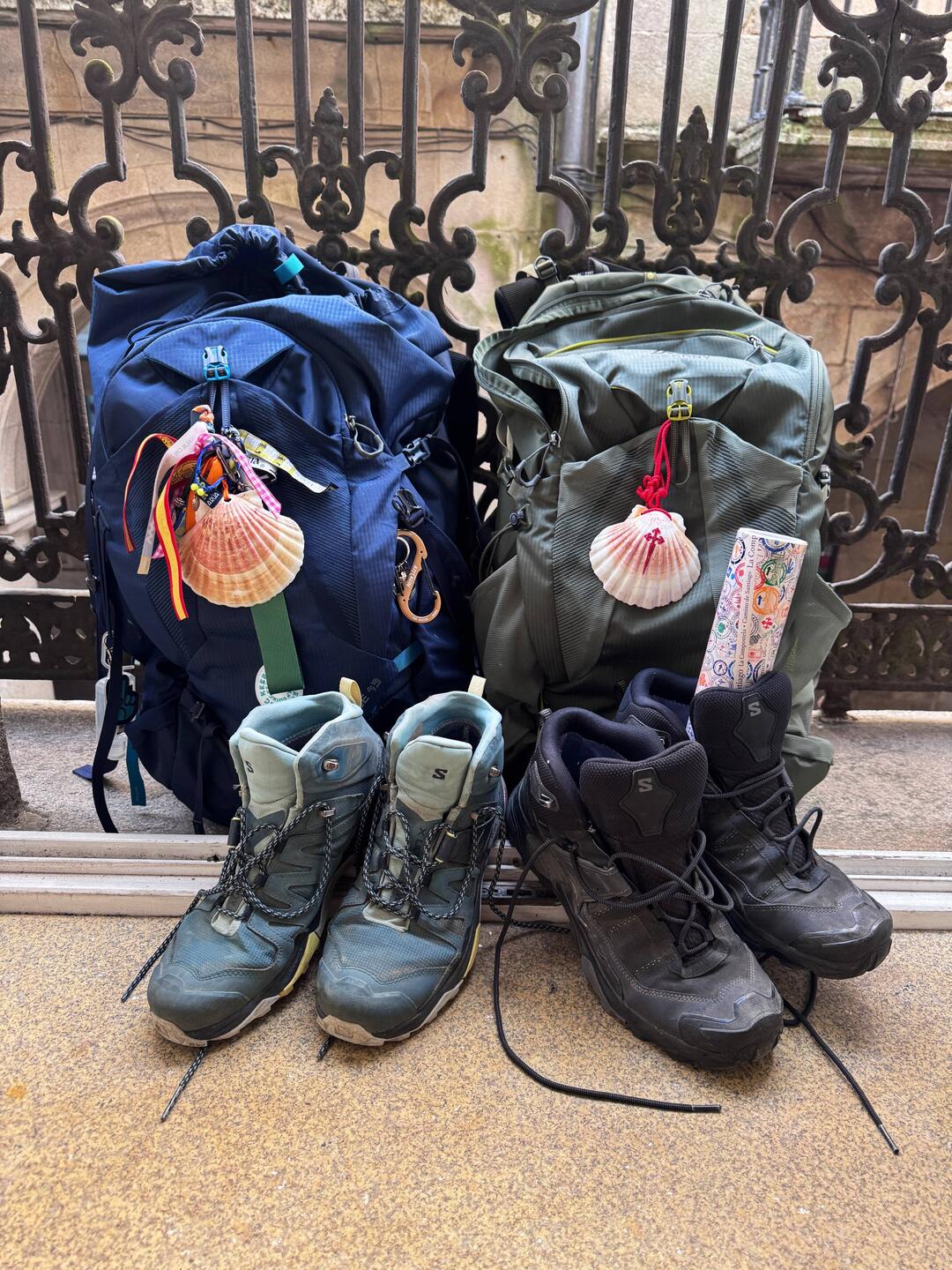 Time slows down a bit when you’re this close… you’re in disbelief that you’ve actually come this far and you vaguely remember the hard times and the doubts that arose when you were sweating and climbing hills and your feet were hurting but none of that matters because you’re almost there! You can just barely catch glimpses of the towers as you wind through the narrow streets with tons of people jostling and moving forward. And then you burst onto the plaza finally and are so relieved, grateful and happy. I shed a few tears that we had actually made it and was so thankful that after all of our adventures together Luke and I had arrived- we hugged and said a quiet prayer together and just tried to take in the flood of emotions. For me the joy was magnified just because I was able to accomplish this alongside my boy! Then it was time for pictures and silliness and watching the other pilgrims around us and their reactions too. It was just after 7pm and cloudy so our arrival pictures are dark and moody but the joy we felt was bright! The pilgrims office was closed and we were too late for the Pilgrim’s Mass but we were here and tomorrow we could quietly get to those events. Tonight it was time to celebrate with a big seafood paella, some pimentos de Padrón, Spanish wine and cold Estrella beer and then fall into our beds without worry or setting alarms.Leer más