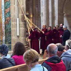 Monday morning came too soon. We got up and checked out of our sweet little hotel room that had a Juliet balcony and windows with a view of the Cathedral. We left our bags in lockers and Luke went to enjoy the view on the rooftop tour of the Cathedral while I shopped around a little. We had an early lunch then decided to go to Mass a final time before boarding our bus back to Porto for our flight home. Our Mass was beautiful again and so meaningful because of all we’d been through to get here and sad because we had to leave. Luke translated the major points of the homily for me and at several points even I could understand the priest when he exhorted us to ask St James for his protection and intercession. And then it happened! The Tiraboleiros in red appeared and began preparing the giant incenser, the Botafumeiro, to swing. Seeing this iconic occurrence is rare and I really appreciated my second time to witness it and also to have Luke see it! We watched the priest light the flame for the incense and then step back as the men heaved together to lift and swing the Botafumerio. We were on the side of the church in position to watch it clank and spark and smoke and swing up high from side to side of the church - truly exhilarating! Then the priest blessed us and we left the beautiful church with sadness but anticipation of life after Camino. We walked over to board the bus to the airport in Porto and we were on our way back home; excited to see our loved ones and share our experiences. 🙏❤️ 🥾Read more