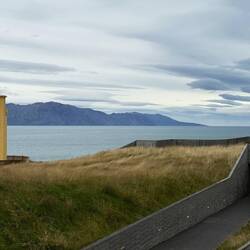 Nachdem wir durch das Land gefahren sind, kommen wir in Stykkishólmur an. Kurz steigen wir auf einen Hügel mit Leucht-„Turm“ und geniessen die Sicht bis zu den Westfjorden.