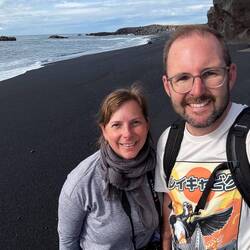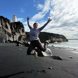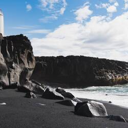 Auf dem Rückweg machen wir Halt beim Leuchtturm und entdecken einen schwarzen Sandstrand! Wunderschön!😍