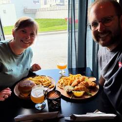 Dem Ufer entlang spazierten wir bis zum Sun Voyager und dann in eine gemütliche Weinbar 🍷 Anschliessend probierten wir die wohl besten Burger der Stadt im 2Guys 😋😋😋