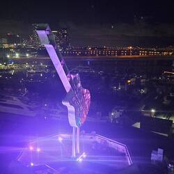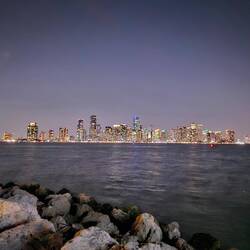 Für den Sonnenuntergang planen wir spektakuläre Fotos bei einem Leuchtturm. Doch der ellenlange Stau macht uns einen Strich durch die Rechnung. Als wir ankommen, ist es bereits dunkel. Wenigstens können wir die Skyline von fast dort aus fotografieren – ein kleiner Trostpreis.