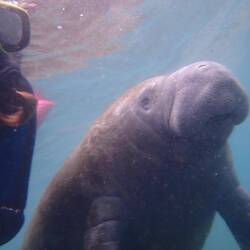 Ein Manatee scheint allerdings besonders interessiert zu sein. Immer wieder spüre ich, wie jemand mein Bein packt und denke zuerst, einer der anderen Schnorchler möchte mich wegstossen. Irgendwann klärt mich der Guide auf: Ein junges Manatee hat Gefallen an meinem Bein und den Füssen gefunden! „Treten Sie es bloß nicht!“, sagt er lachend. Kein Problem – die Tiere sind ja harmlos und können nicht beissen.
