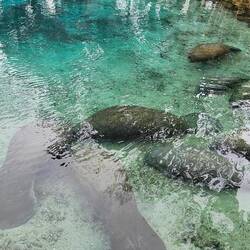Leider frieren die anderen schneller, und so müssen wir zurück aufs Boot. Beim Rückweg durchs Wasser schwimmen noch einige Manatees direkt an mir vorbei und unter mir durch. Ihre ruhige, sanfte Art ist einfach faszinierend.