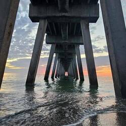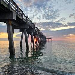 Nach einem kurzen Zwischenstopp im neuen Hotel zieht es uns direkt zum Pier. Dort erleben wir einen Sonnenuntergang, wie er im Bilderbuch steht – die Farben, das Licht, einfach magisch! 🥰