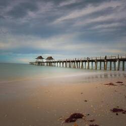 Eigentlich hatten wir die Fotos vom Pier schon abgeschrieben, aber im Restaurant sehen wir ein beeindruckendes Bild vom Pier im Regen, das uns motiviert, es doch noch zu versuchen. Der Regen hört sogar auf! Die Fotos, die wir machen, werden überraschend schön – allerdings ist es schon spät.