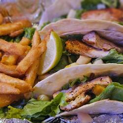 Zum Mittagessen gibt es Fish Tacos im „Joanie’s Blue Crab Café“, einem kleinen, charmanten Lokal, das für seine frischen Meeresfrüchte bekannt ist.