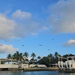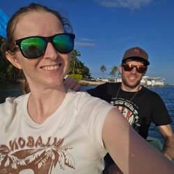 Am Nachmittag fahren wir mit dem Boot durch die 1000 Islands – eine Gruppe von Mangroveninseln. Und dann: eine Delfinfamilie! Zwei grosse Delfine und ein Jungtier spielen miteinander. Doch die grossen Delfine machen eher Erwachsenenspiele und sorgen für einige "Schmunzler" – sie tollen miteinander in den Wellen und zeigen beeindruckende Sprünge. Unser Captain meint, dass wenn wir glück hätten, die Delfine auf den Wellen vom Boot surfen werden. Kaum ausgesprochen, schwimmen die Delfine hinter dem Boot her, springen und surfen mit den Wellen! Leider stehe ich genau am falschen Ort für die besten Fotos, aber der Moment bleibt trotzdem unvergesslich.