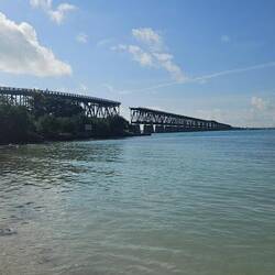 Da wir in Key West keine genauen Pläne haben, fahren wir gemütlich die Keys entlang Richtung Islamorada. Bei der Bahia Honda Railroad Bridge machen wir auf beiden Seiten Fotostopps und legen eine Badepause am kleinen Calusa Beach ein. Trotz der violetten Flagge, die vor Portugiesischen Galeren warnt, sehen wir keine Quallen und schwimmen eine kleine Runde im Meer und geniessen am Strand das Meeresrauschen und die warme Sonne in vollen Zügen.