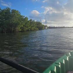Nachdem der Startort zweimal geändert wurde, kommen wir schließlich um 19:15 Uhr beim Banana River an und erhalten eine kurze Einweisung, bevor wir lospaddeln.