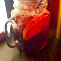 Abends gönnen wir uns ein richtiges Festmahl: saftiges Steak, Knoblauchshrimps und… zu viel Sangria. Nach dem ersten Glas überlege ich, einen Pitcher zu bestellen, aber lasse es, als ich merke, wie ich leicht beschwipst zur lateinamerikanischen Musik wippe. 😅