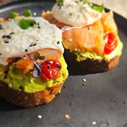 Plan B: Frühstücken! Im "Sunny Eggs" bestellen wir uns einen "Lachs, Ei, Avocado Toast" sowie "Granola mit frischen Beeren und Joghurt" – dazu noch ein kleines Dessert. Mein Gott, ist das lecker! Wir teilen uns natürlich alles fein säuberlich, damit wir nichts verpassen.