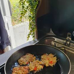 Ich fahre gegen Mittag nach Vigo und bleibe oben am Berg, bei der Kirche stehen und koche mir ein Essen .