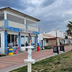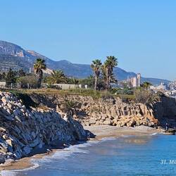 Es ist stürmisch bis 70 kmh. Ich gehe vormittags, als der Wind noch kaum vorhanden ist, über den Strand nach Oropesa. Nachmittags beginnt dann der angekündigte Sturm alles wird weggeräumt und ichLue lisää