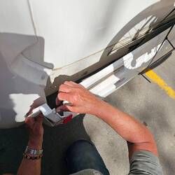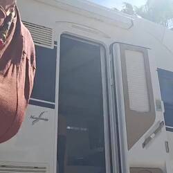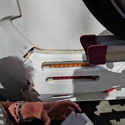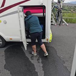Bevor wäre, Anna und ich, unser nächstes Tagesziel anvisieren, hilft Walter noch Anna die Satellitenantenne zu reparieren. Mein Spray von WD40 professional hilft dabei. Gegen 11 Uhr fahren wir losLue lisää