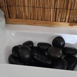 Gleich morgens geht's mit dem Fahrrad zum Supermercado und beim Chinesen kaufe ich eine neue Bratpfanne. Mittags bin ich zurück denn ich war für 11 Uhr zur Hot Stone Massage angemeldet. Dann werdeLue lisää
