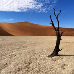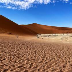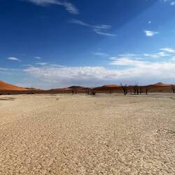Sossusvlei ist eine Senke in einem Nationalpark, wo in diesen Tagen ein Fluss endet, der einmal im Jahr für 3 Monate fließt, dann die Senke mit Wasser füllt, mit dem dann Flamingos von der KüsteLeer más